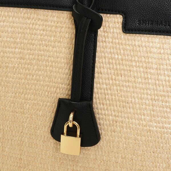 カジュアルな雰囲気に部分使いのフェイクレザーがグッと引き締めてくれきちんと感のあるデザインは大人女子におすすめバッグです。