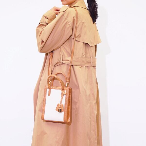 人気の縦長トートバッグを今季はフレーム切替でフェミニン仕立にしました。