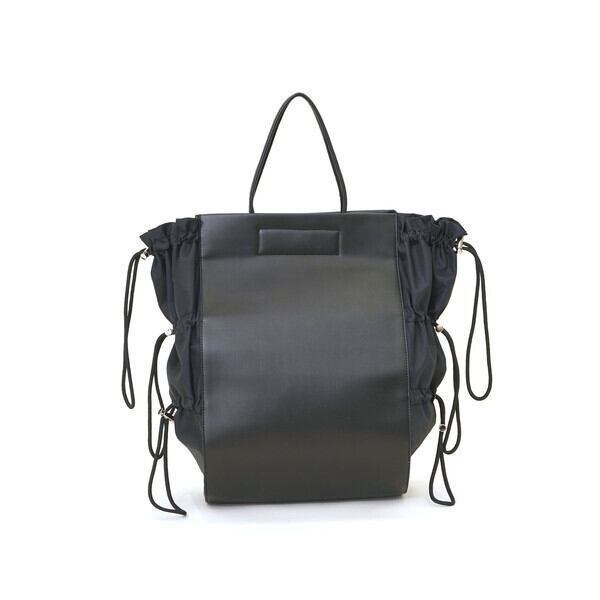 サイドのひもでシャーリング感を毎セルフで出して、荷物の容量に合わせて