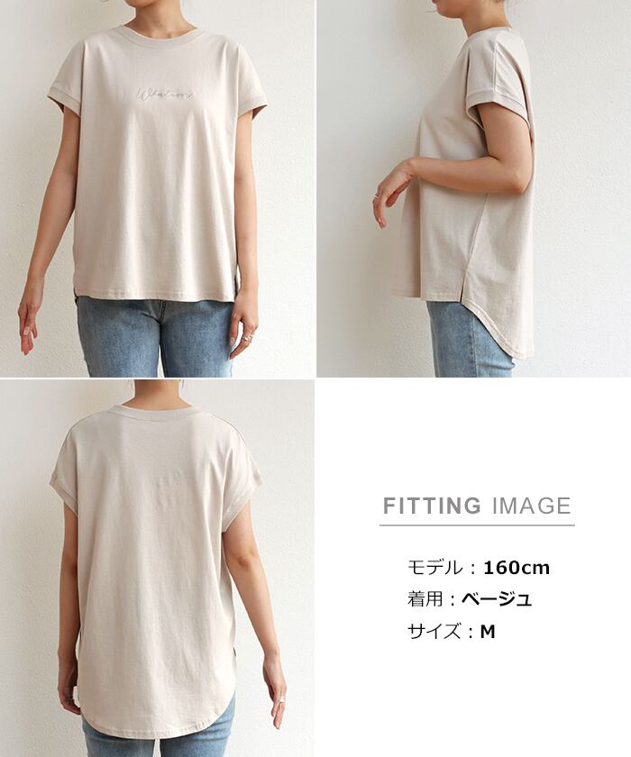 コットン天竺 Whatever ロゴ 刺繍 フレンチスリーブ Tシャツ