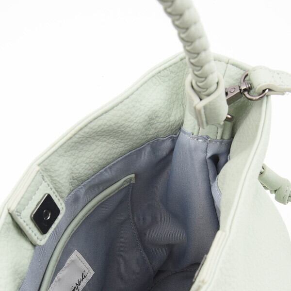 メッシュに編んだハンドルがソフトで肩にも服にも優しい素材になっています。