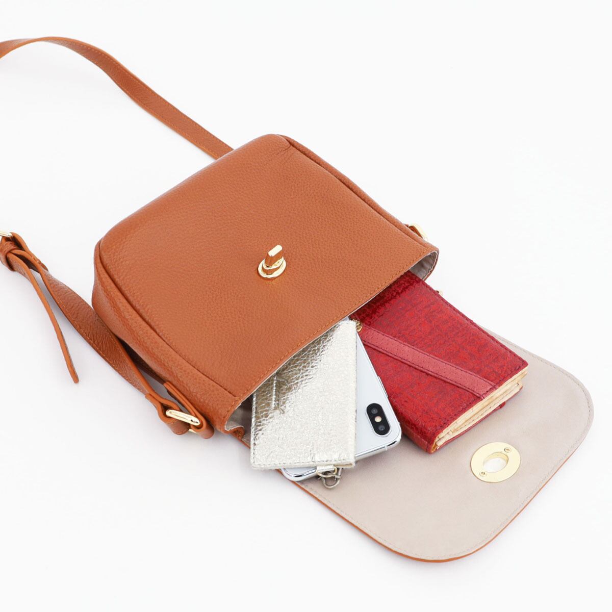 マチ幅があり、財布/スマホ/イヤホンなど見た目以上の収納できます。