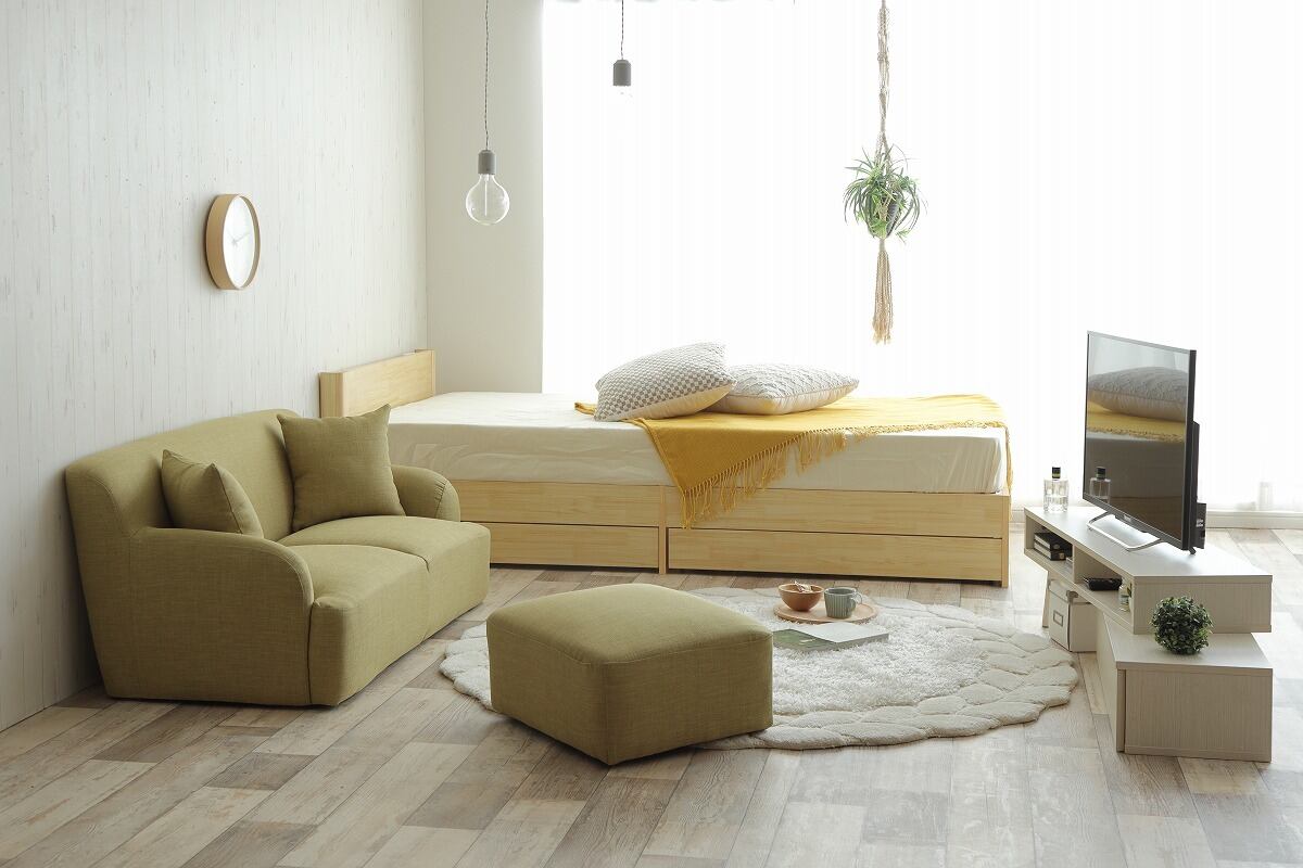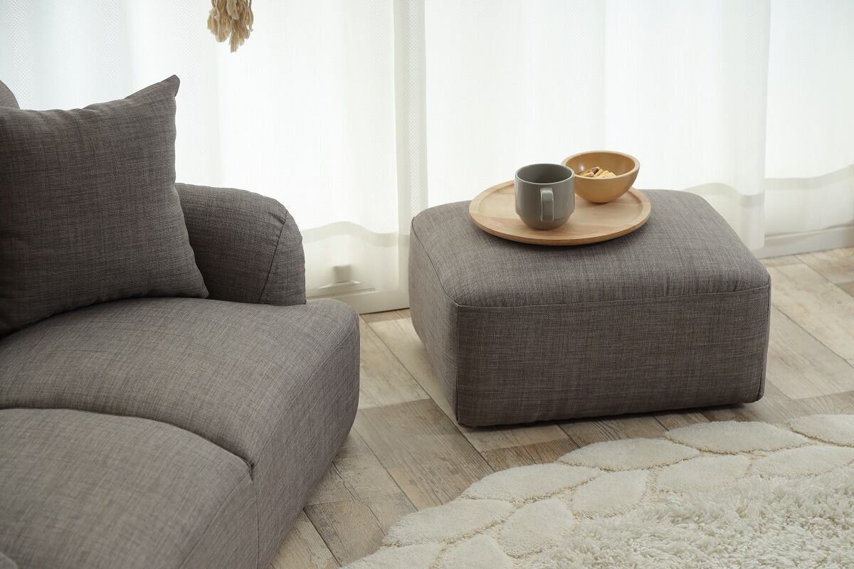 シーンに合わせて組み替えられるオットマン付き2人掛けソファ