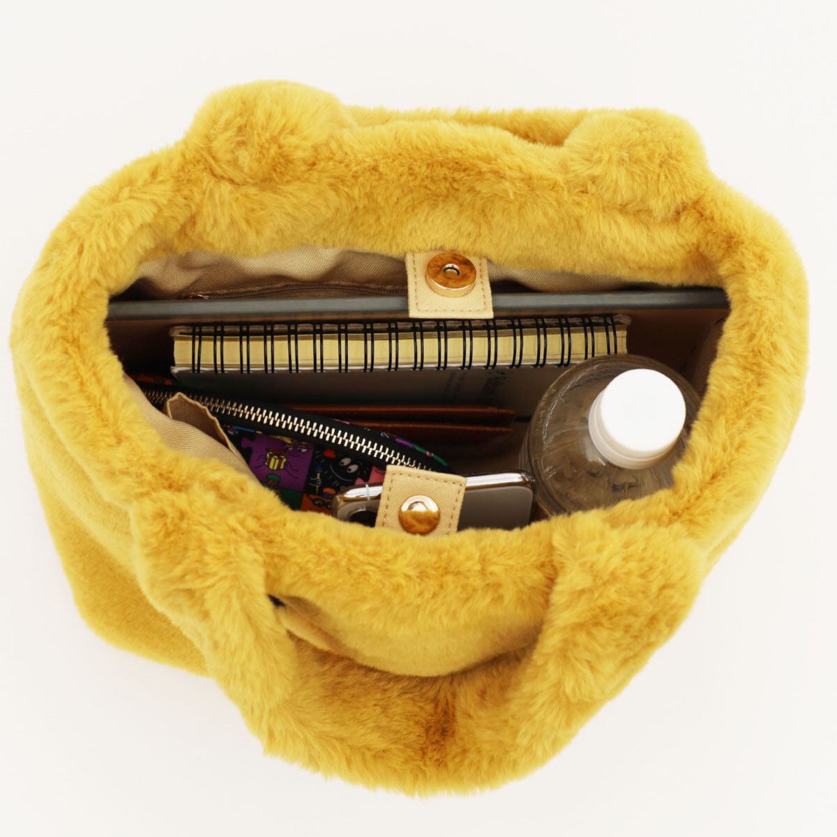 肌触りの良いエコファーを使用したバッグは、シンプルなフォルムで使い勝手も◎