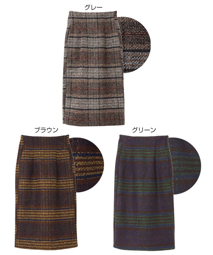 ウール調 チェック柄 タイトスカート